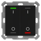 KNX Taster Light 55 2-fach, RGBW, Temperatursensor, Schwarz matt, Schalten. Ausführung I/O Symbol mit 2 Tastenpaaren / 4 Tasterflächen und Temperatursensor. Passend für 55 mm Schalterprogramme z. B. MDT Sortiment 55 oder GIRA Standard 55, E2, Event, Esprit oder BERKER S1, B3, B7 oder JUNG A 500, A PLUS, A CREATION, AS 500, A 550, A FLOW oder MERTEN 1M, M-Smart, M-Plan, M-Pure. Die Tasten sind als Tastenpaar oder Einzeltasten frei einstellbar. Ein- und Zweitasterbetrieb für Schalten, Dimmen, Jalousie, Werte. Umschalten von bis zu vier Werten oder Szenen. Kurzer/Langer Tastendruck mit 2 Objekten. Innovative Gruppensteuerung mit langem/extra langem Tastendruck. Mehrfach-Tippfunktion sendet bis zu 4 Werte auf gleiche oder verschiedene Objekte. Zwei RGBW Status-LEDs pro Tastenpaar. LED Helligkeit über Tag/Nacht- oder Helligkeit-Objekt steuerbar. 4 Logikblöcke. Einbau in Schalterdose mit mitgeliefertem Tragring. Integrierter Busankoppler. 3 Jahre Produktgarantie.