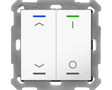 KNX Taster Light 55 2-fach, RGBW, Temperatursensor, Reinweiß glänzend, Jal._Sch.. Ausführung Auf/Ab und I/O Symbol mit 2 Tastenpaaren / 4 Tasterflächen und Temperatursensor. Passend für 55 mm Schalterprogramme z. B. MDT Sortiment 55 oder GIRA Standard 55, E2, Event, Esprit oder BERKER S1, B3, B7 oder JUNG A 500, A PLUS, A CREATION, AS 500, A 550, A FLOW oder MERTEN 1M, M-Smart, M-Plan, M-Pure. Die Tasten sind als Tastenpaar oder Einzeltasten frei einstellbar. Ein- und Zweitasterbetrieb für Schalten, Dimmen, Jalousie, Werte. Umschalten von bis zu vier Werten oder Szenen. Kurzer/Langer Tastendruck mit 2 Objekten. Innovative Gruppensteuerung mit langem/extra langem Tastendruck. Mehrfach-Tippfunktion sendet bis zu 4 Werte auf gleiche oder verschiedene Objekte. Zwei RGBW Status-LEDs pro Tastenpaar. LED Helligkeit über Tag/Nacht- oder Helligkeit-Objekt steuerbar. 4 Logikblöcke. Einbau in Schalterdose mit mitgeliefertem Tragring. Integrierter Busankoppler. 3 Jahre Produktgarantie.