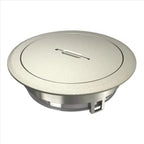 Geräteeinsatz mit Tubus und Griffbügel für Bodensteckdose GES R2 zum direkten Einbau in die Installationsdose MT R2 im Innenbereich. Der Tubus erfüllt die Anforderungen der EN 50085-2-2 an nass gepflegte Böden auch während die Bodensteckdose in Gebrauch ist.