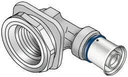 Press-Spülkasten-Anschlusswinkel mit IG und Kontramutter, aus Messing porenfrei metallisiert, inkl. Stützhülsen mit O-Ringen und Stahl bzw. Edelstahl-Presshülsen, "unverpresst undicht" KEINE Gewinderohre und Tempergussfittings eindrehen!