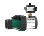 Mehrstufige, horizontale Kreiselpumpe in Trockenläufer-Bauart, selbstansaugend, mit direkt angeflanschtem Motor und automatischer Pumpensteuerung HiControl 1. Abdichtung am Wellendurchlass durch wartungsfreie Gleitringdichtung.Zur Förderung und Druckerhöhung von Trinkwasser (Trinkwasserzulassung nach ACS) oder leicht verschmutztem Wasser im Wohn- und Landwirtschaftsbereich und weiteren Bereichen.Wasserversorgung aus Brunnen, Zisternen zur Bewässerung, Beregnung, Druckerhöhung usw.Zweipoliger Einphasenmotor mit Kabelverschraubung, Kondensator im Anschlusskasten, Motorschutzschalter mit automatischer Wiedereinschaltung, Wassermangelsicherung.LieferumfangPumpeHiControl 1-PumpensteuerungZwei Kunststoffverbinder mit Dichtungen zum manuellen Anschließen an die ZulaufrohreEin Elektro-SchnellanschlussEinbau- und BetriebsanleitungWerkstoffeWelle: EdelstahlWellendichtung: BVPFFMaterial Dichtung: EPDMMaterial Stufenkammer: PPE/PS-GF30BetriebsdatenFördermedium: WasserMin. Medientemperatur: 0 °CMax. Medientemperatur: 40 °CMaximaler Betriebsdruck: 8 barDruckanschluss: G 1Min. Umgebungstemperatur: -15 °CMax. Umgebungstemperatur: 40 °CMotordatenNetzanschluss: 1~230 V, 50 HzSpannungstoleranz: +10/-15 %Motornennleistung: 500 WNennstrom: 3.2 ANenndrehzahl: 2900 U/MinIsolationsklasse: FSchutzart: X4EinbaumaßeSaugseitiger Rohranschluss: G 1Druckseitiger Rohranschluss: G 1BestellinformationenGewicht netto ca.: 10.7 kgFabrikat: WiloArtikelnummer: 2543600