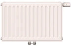VN-T6-Mittenanschlussheizkörper Mittenanschlussheizkörper aus kaltgewalztem Stahlblech nach EN 442-1, stabile, formschöne Profilierung mit 40 mm Sickenteilung, Grundbeschichtung nach DIN 55900 Teil 1, bei 190 Grad C eingebrannt, fertig lackiert mit einer elektrostatischen Pulverbeschichtung nach DIN 55900 Teil 2, in RAL 9016, Einbrennung bei 210 Grad C Objekttemp., ausgestattet mit fix eingebauter T-förmiger Ventilgarnitur, geeignet für Zweirohr- und Einrohranlagen unter Verwendung eines Einrohrverteilers, kv-Wert des werkseitig montierten Einbauventiles ist voreingestellt und auf die Wärmeleistung abgestimmt, wobei bedarfsgerechte Anpassungen im Bereich von 0,13 bis 0,72 möglich sind. Einstellung des Heizkörperanteiles bei Einrohranlagen von 30 % bis 50 %. Ausgestattet mit Baustellenschutzkappe für das Einbauventil, rückseitig angeschweißten Aufhängelaschen, einer abnehmbaren, oberen Abdeckung und zwei geschlossenen Seitenteilen bei allen Typen, Entleerungs-, verdrehbarer Spezialentlüftungs- und Blindstopfen eingedichtet, das Abdecksystem entspricht den ehemaligen BAGUV- Richtlinien, komplette Vorinstallationsmöglichkeit durch die Montageschablone 3/4' A.G., Spülung und Dichtprüfung der Anlage mittels Spülbogen (Zubehör), alternativ auch als Kompaktheizkörper einseitig oder wechselseitig anschließbar, einheitlicher Wandabstand bei allen mehrlagigen Heizkörpern (mit Spezial- winkellasche auch bei einlagigen Heizkörpern). Demontage und Montage der oberen Abdeckung mittels Dekorclips, leistungsgeprüft nach DIN EN 442 bzw. ÖNORM EN 442 und permanent fertigungsüberwacht nach EN-ISO 9001, dreifach verpackt (Kartonage, Kanten- schutz, Schrumpffolie). Geeignet für Hand- und Thermostatbetrieb, variable Anschlussmöglichkeit für Kupfer-, Stahl-, Kunststoff- und Metallverbund- rohre, Anschlüsse: 4 x G 1/2 I.G. und 2 x G 3/4 A.G. unten mittig. Thermostatventil (werkseitig rechts oben eingedichtet) jederzeit auch nachträglich ohne Drehen des Heizkörpers und ohne Kreuzen von Vor- und Rücklauf problemlos auf links austauschbar.