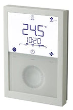 Eingebauter Fühler für Temperatur. Für Applikationen mit 2-Punkt- (Ein/Aus oder PWM) oder 3-Punkt-Ausgangssignal. Für Applikationen mit 3-stufigem oder DC-Ventilator. Wählbares Wochenzeitprogramm, mit 20 Std. Gangreserve bei Stromausfall. Betriebsspannung AC 230 V