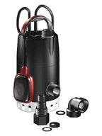 Einstufige Schmutzwasserpumpe für Schmutzwasser ohne langfaserige Bestandteile. Aus korrosionsbeständiger Komposit-Edelstahl-Kombination mit Kühlmantel und vertikalem Druckstutzen. Einsatzfertig mit Tragegriff, Selbstentlüftung, abnehmbarem Siebfuß zur Flachabsaugung, Netzkabel mit Schutzkontaktstecker und Schwimmerschalter. Zusätzlich im Lieferumfang: Abgestuftes Adapterstück mit Aussengewinde in 3/4', 1' und 1 1/4' und Rückschlagklappe für transportablen Einsatz. S1 Betrieb bei aufgetauchtem Motor durch Motormantelkühlung. Aussetzbetrieb >20 Schaltspiele pro Stunde im ausgetauchten Zustand. Flachabsaugung bis 3 mm Wasserstand ohne Zusatzteile. Tauchmotor mit eingebauten Thermoschal- ter als Motorschutz bei Trockenlauf und Blockierung. Feuchtigkeitsschutz des Motors durch hermetische Kapselung. Dauerfettgeschmierte Kugellager, Dichtung mediumseitig mit doppelten Radialwellendichtringen mit Keramikbuchse für längere Standzeit. Einfacher Radialwellendichtring zum Motor. Dazwischenliegende Sperrkammer mit Spezialfett als Trockenlaufschutz. Netz- und Schwimmerschalterkabel mit hermetischer Abdichtung zum Motor. Verstellbare Schaltpunkte über Schwimmerschalterfixierung am Griff. Selbstentlüftung zum sicheren Anlauf bei trocken gefallenem Pumpensumpf.