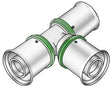 Press-T-Stück egal oder reduziert, aus entzinkungsbeständigen Messing (DZR) porenfrei metallisiert, inkl. Stützhülsen mit O-Ringen und Edelstahl-Presshülsen, "unverpresst undicht"