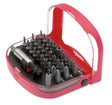 Spezial-Bit-Satz, 33-Teilig. Bit-Sortiment zum Lösen von Sicherheitsschrauben, Inhalt: je 1 Stück, Magnethalter 60 mm für 1/4"-Bitantrieb. Bits TX mit Bohrung (Tamper Resistant) T8-T10-T15-T20-T25-T27-T30-T35-T40, Bits Innensechskant mit Bohrung (Tamper Resistant) 2-2, 5-3-4-5-6 mm, 5/64"-3/32"-7/64"-1/8"-9/64"-9/32"; Bits Schlitz mit Aussparung (Klauenschlüssel/Spanner) 4-6-8-10 mm, Bits Dreiflügel (Tri-Wing) TW1-TW2-TW3-TW4, Bits Vierflügel (Torq-Set) TS6-TS8-TS10 mm