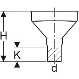 Geberit Trichter ovalTechnische EigenschaftenWerkstoff: PE-HDd, ø / Außendurchmesser (mm): 50 mmL / Länge (cm): 17,5 cmB / Breite (cm): 9,5 cmH / Höhe (cm): 18,5 cmK / Kürzung (cm) - max.: 5 cmZusätzlicher LieferumfangVentilsieb