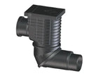 HL600NHO Regensinkkasten mit horizontalem Zulauf DN110 (Muffe) und Abgang DN110/125. Leitungen, welche in der Fassade geführt werden, können dicht an die Muffe des Regensinkkastens angeschlossen werden. Mit 360 Grad horizontal verstellbarem Drehgelenkanschluss (stufenlose Verdrehmöglichkeit von 0-90 Grad horizontal auf vertikal), mechanischer Geruchssperre mit Lippendichtung, Laubfangkorb mit Überlauffunktion und Reinigungsdeckel mit Griff.