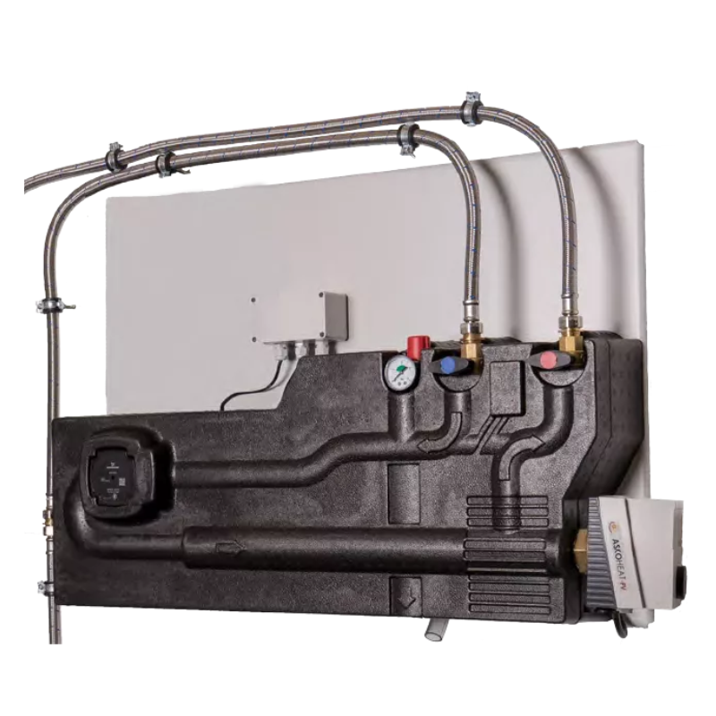Die ASKOWALL ist für eine einfache Montage an jeden herkömmlichen Heizungspufferspeicher konzipiert, um so dem Nutzer eine energieeffiziente, sanfte Hochtemperatur-Schichtung zu generieren. Hierzu kann die ASKOWALL direkt an den jeweiligen Pufferspeicher angeschlossen werden.