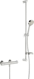 ALLGEMEINE ATTRIBUTE: - Produktgruppe: Duscharmatur - Einbauart: Wandmontage - Technisches Merkmal: Thermostat - Oberfläche: Chrom - BIM Daten vorhanden: Ja PRODUKT EIGENSCHAFTEN: - Verbindung: S-Anschlüsse, Schalldämpfer - Hebel/Bediengrifftyp: Temperatureinstellgriff, Durchflusseinstellgriff, Eco-Funktion für die Wassermenge - Duschteile: Seifenschale, Brauseschlauch (1750 mm) - Duschstrahlart: Nadel, Intense, Regen - Anzahl der Strahlarten: 3-strahlig - Temperatureinstellungen: Heißwassersperre einstellbar (im Lieferumfang enthalten), Sicherheitssperre gegen Verbrühen bei 38C - Mechanische Teile: Oberteil mit keramischen Dichtscheiben zur Wassermengeneinstellung für einen Abgang, Thermostatkartusche zur Temperaturreglung, Rückflussverhinderer, Schmutzfilter - Spezielle Eigenschaften: Armaturenkörper aus entzinkungsbeständigem Messing (DZR), Kürzbar - Zusätzlich Eigenschaften: Eigensicher gegen Rückfließen im häuslichen Gebrauch (nach DIN EN 1717) FLIESSEIGENSCHAFTEN: - Durchfluss bei 300 kPa: 12,00 l/min BESTIMMUNGEN / VORSCHRIFTEN: - EN Standard: EN 1111 TECHNISCHE EIGENSCHAFTEN: - DN-Größe: DN15 - Handbrausengröße: 100 mm - Heißwasserversorgung: max. +90C - Arbeitsdruck: 100 - 1000 kPa - Installationsabstand: cc150 +- 15 mm LOGISTIK: - Bruttogewicht: 3.68 kg - Verpackungsmaße: 959.0 x 203.0 x 108.0