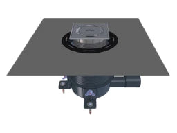 HL541 HL541 Duschablauf "Primus blue", mit 3 Befestigungswinkeln, die am Boden befestigt werden und in der Höhe verstellt werden können. Das Ablaufgehäuse muss in der Verlegephase nicht genau an die Estrichoberkante angepasst werden. Der herausstehende Ablaufteil wird estrichbündig abgesägt. Nach Montage der Abdichtgarnitur wird der Aufsatz auf die Fliesenhöhe angepasst.