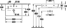 Armatur/Hahnloch Hinweise: beim Einsatz einer Wandauslaufarmatur empfehlen wir eine Ausladung von mindestens 205 mm