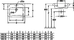VILLEROY&BOCH V&B Waschbecken Newo 600x470mm Eckig 1HL mit Überlauf Weiß Alpin – 4A926001