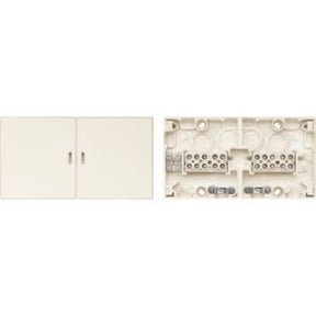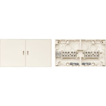 2 bruchgeschützte Deckel mit Schnappverschluss, 3 herausnehmbare Klemmsteine mit 12 Doppelklemmen. Große, übersehbare Anschlussräume. Schraub- und Krallenbefestigung für 60er- und 70er-UP-Dosen (Mauerwerk, Hohlwand- und Betonbau), mit abnehmbaren Spreizkrallen. Dübelbefestigung ebenfalls möglich. polarweiß