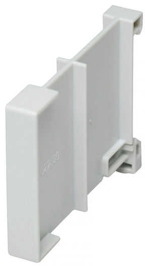 Distanzstück, Plastik, grau, 9 mm breit, zum Trennen von Installationsschützen Serie 22.3x auf der DIN-Schiene