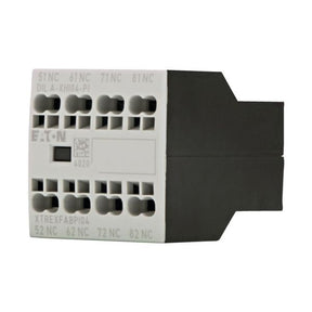 Hilfsschalterbaustein, mit zwangsgeführten Kontakten, Funktion: für Standardanwendungen, 4-polig, Anschlusstechnik: Push-in-Klemmen, Ith 16 A, Bemessungsbetriebsstrom AC-15 220 V 230 V 240 V: Ie= 4 A, Bemessungsbetriebsstrom AC-15 380 V 400 V 415 V: Ie= 4 A, Kontakte Ö = Öffner: 4 Ö, Montagetyp: Frontbefestigung, verwendbar für: DILA -PI, DILM7 -PI, DILM9 -PI, DILM12 -PI, DILM15 -PI, DILM17 -PI, DILM25 -PI, DILM32 -PI, DILM38 -PI, DILMP20 -PI, DILMP32 -PI, DILMP45 -PI, DILM8 -PI, DILM11 -PI, DILM14 -PI, Typ: Frontale Hilfsschalterbestückung