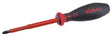 Isolierte Schraubendreher DIN EN 60900, Klassifikation VDE 0682, Teil 201. Stückgeprüft im Wasserbad mit einer Prüfspannung von 10.000 Volt.VDE-Kreuzschlitz-Schraubendreher Phillips nach DIN EN 60900; VDE 0682-201; DIN ISO 8764. Ausführung: PH2x100 mm; Größe: 195 mm